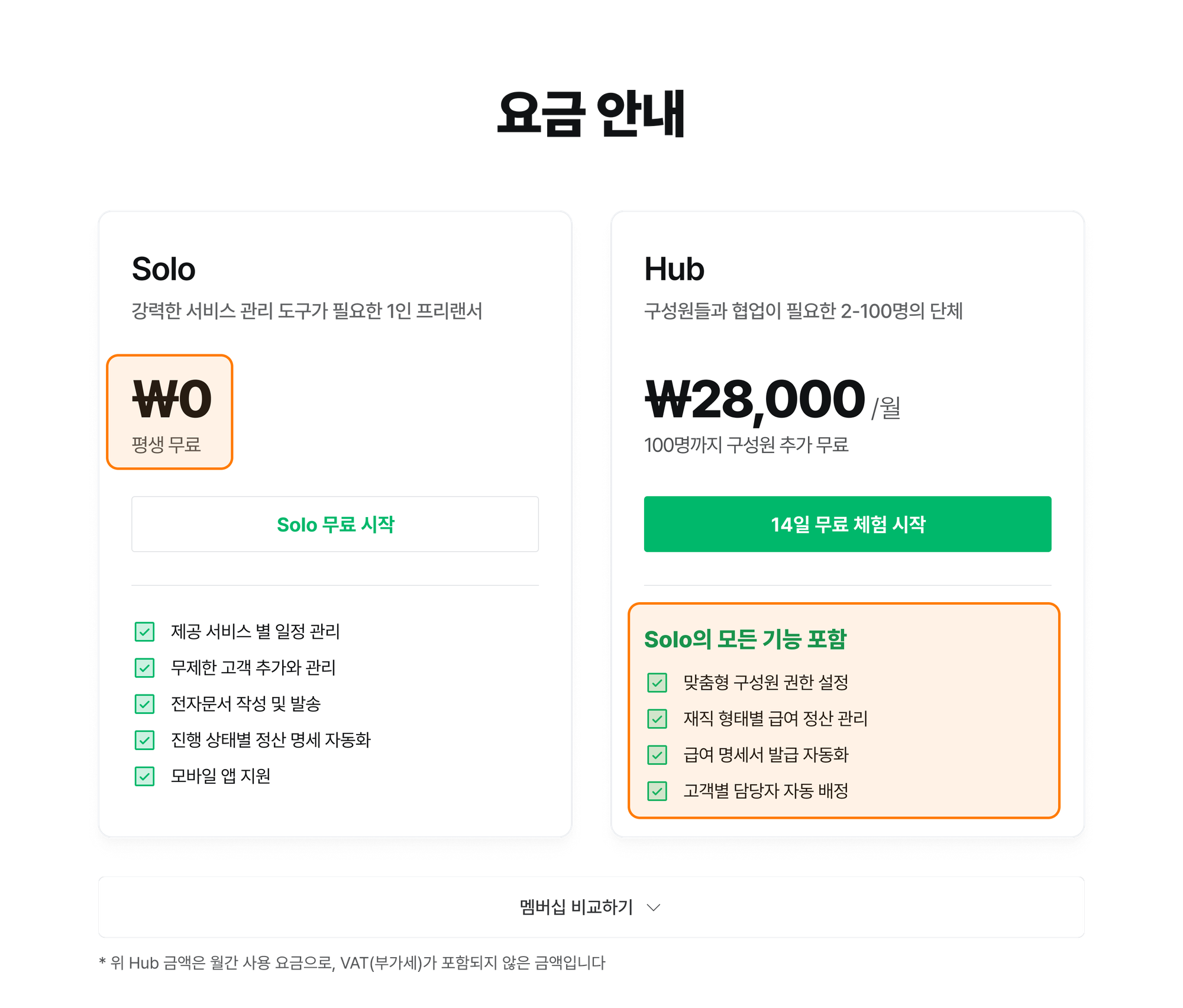 - Hub 사용자에겐 기관 운영에 필요한 구성원 추가 및 급여 관련 항목들을 추가해 관리에 힘을 실어 두었어요(Solo 기능 + 기관 운영 기능).
