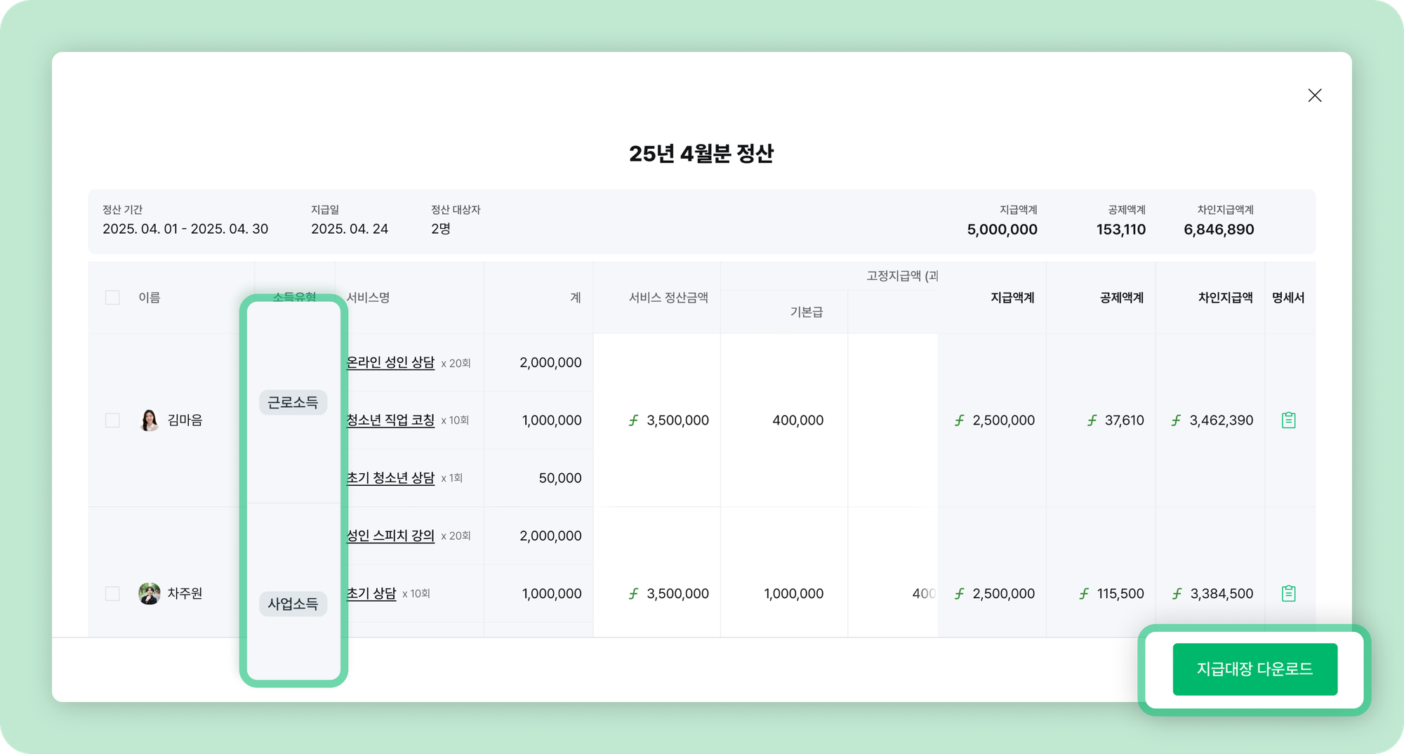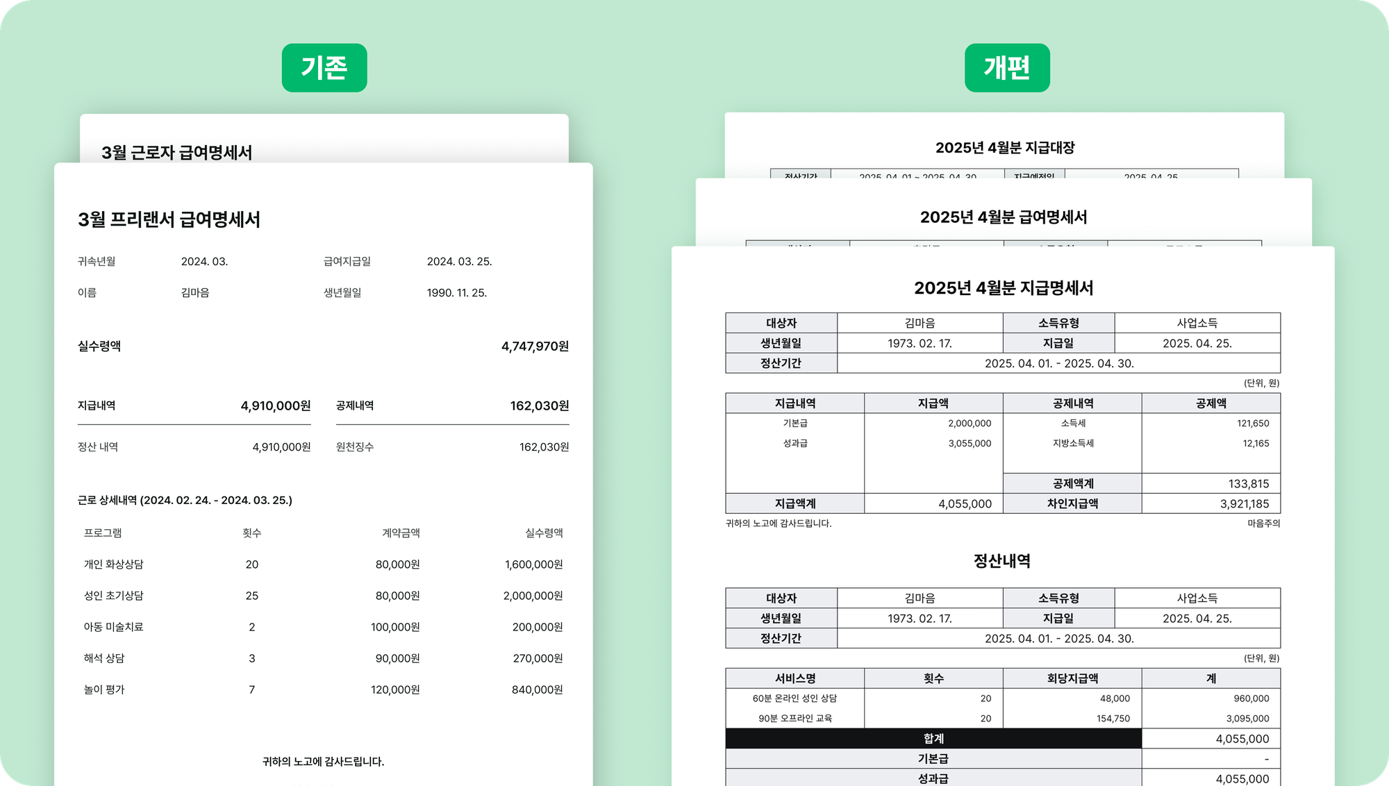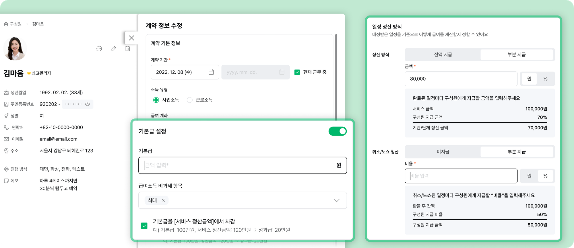 μλ΄μΌν°, νλΌν μ€, νμ μμμ μλ₯Ό μν κΈμ¬κ΄λ¦¬ μ루μ ! μ¬μ μλΒ·κ·Όλ‘μλ λ± μλ μ νλ³λ‘ μλ κΈμ¬κ³μ°, κΈμ¬λͺ μΈμ λ°κΈκΉμ§ ν λ²μ ν΄κ²°νμΈμ.