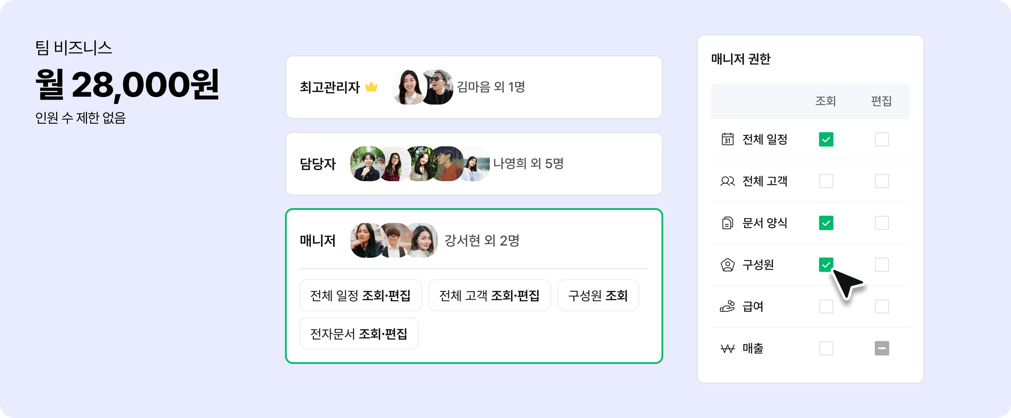 - 🏢 2인 이상 팀이라면? 인원 수 상관없이 14일 체험 기간 후 월 28,000원!