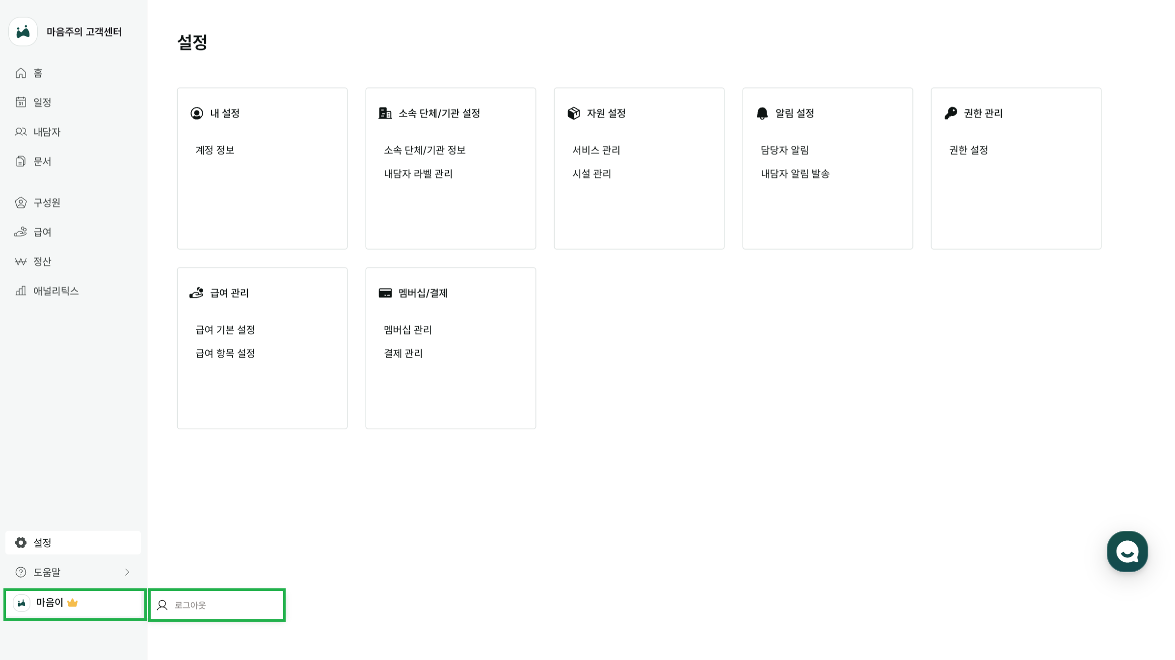 5. 마음주의 아이콘을 더블 클릭하시면, 로그인 후 접속이 됩니다. 공용 PC를 사용하시는 중이시라면, 좌측 하단의 계정 이름을 클릭하여 로그아웃 을 진행하셔서 안전하게 마음주의를 사용해보세요!
