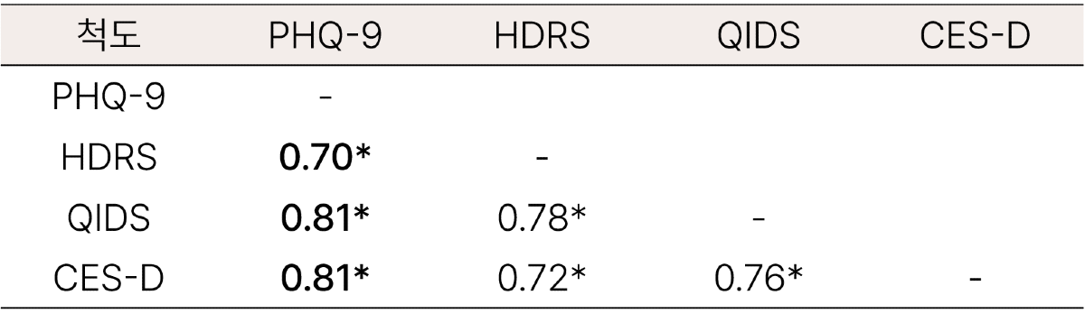 - 그렇다면 사전에 실시된 PHQ-9은 언제까지 유효할까? 명확한 지침은 없지만, 원척도 및 국내 타당화 연구에서 실시한 검사-재검사 신뢰도를 보면 유효기간을 추측할 수 있다.