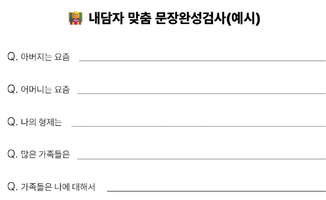 - 준비물: 문장완성검사지, 필기구(연필 및 지우개)